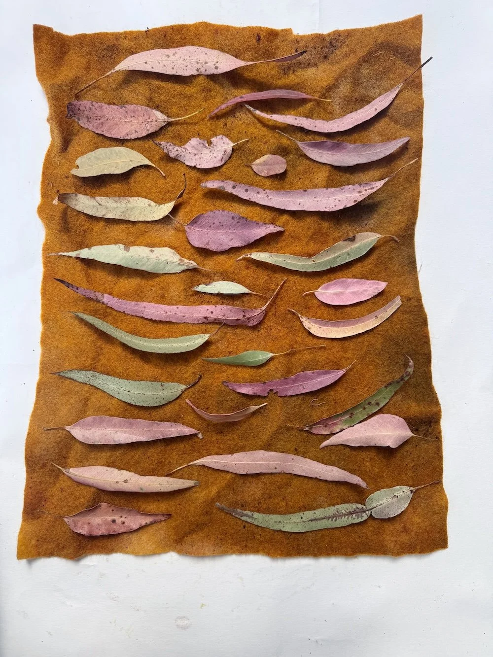 Leaves that have dark tannins - eucalyptus, maple, silky oak, persimmons, rose leaves. (These don’t work as well for solar dyeing, as they do need the heat to extract their pigments).