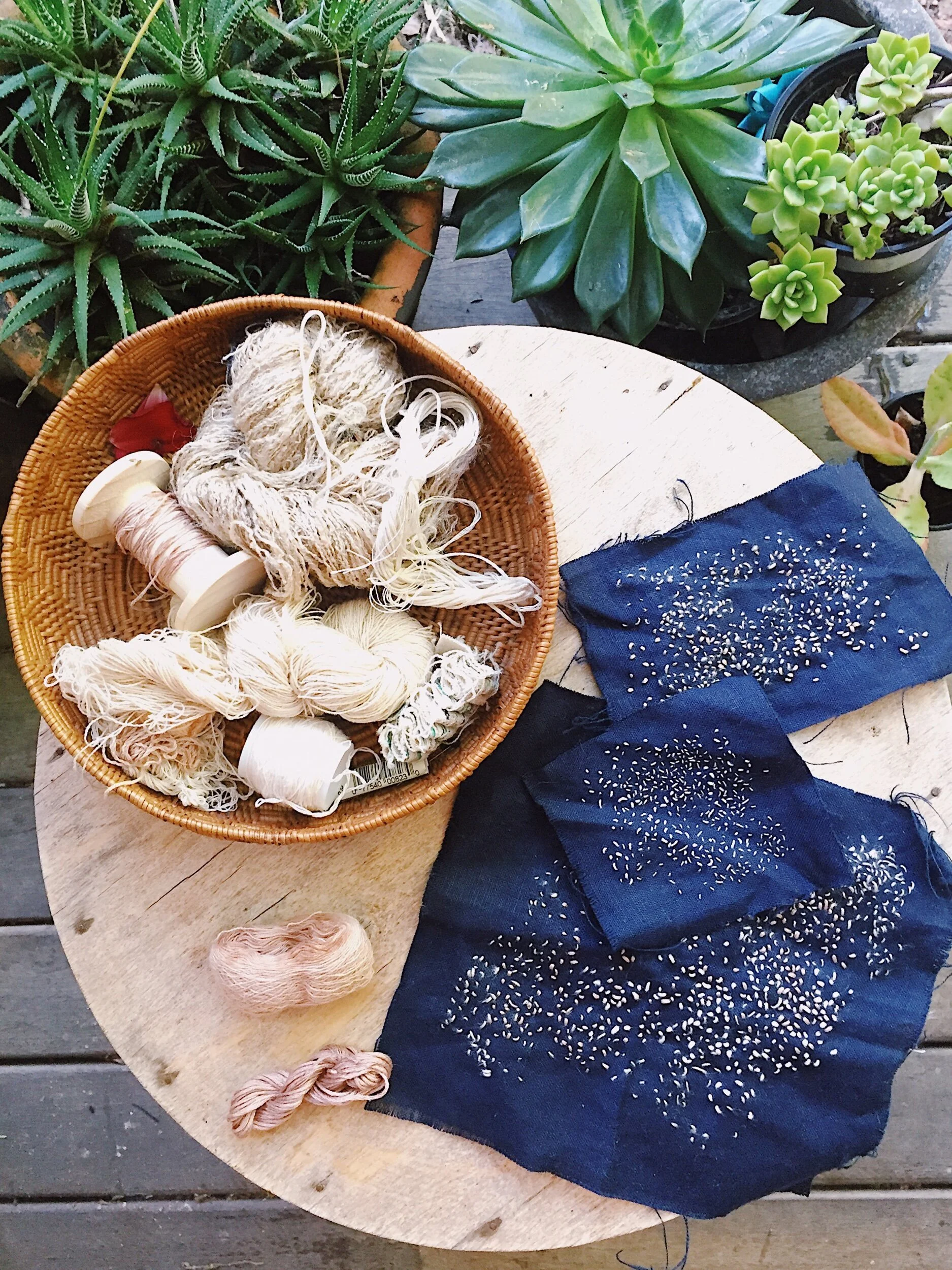 Touch: The feel of fabric softening in the hands, the tug of thread. The coarseness of a fibre, the twist of the thread.